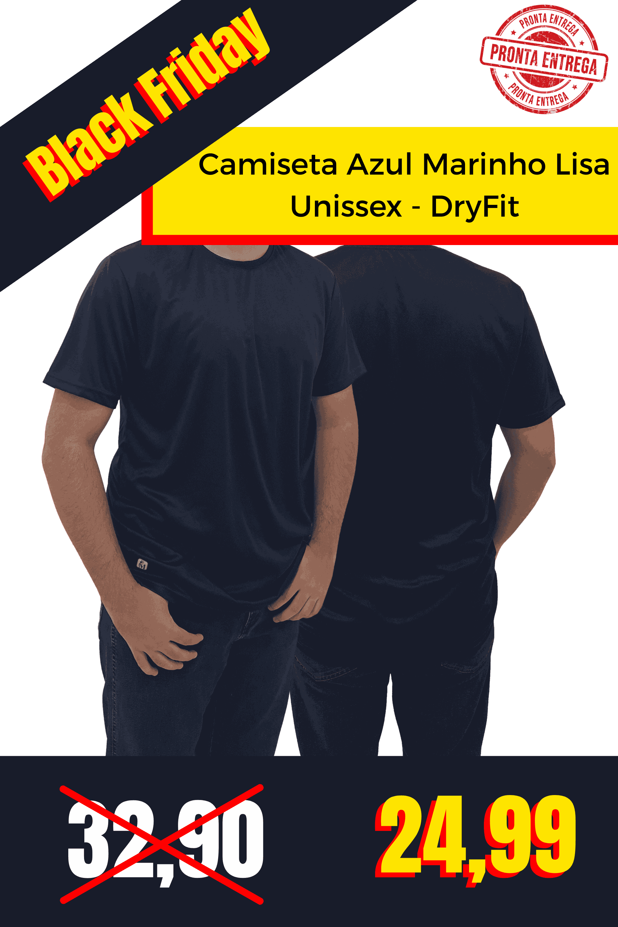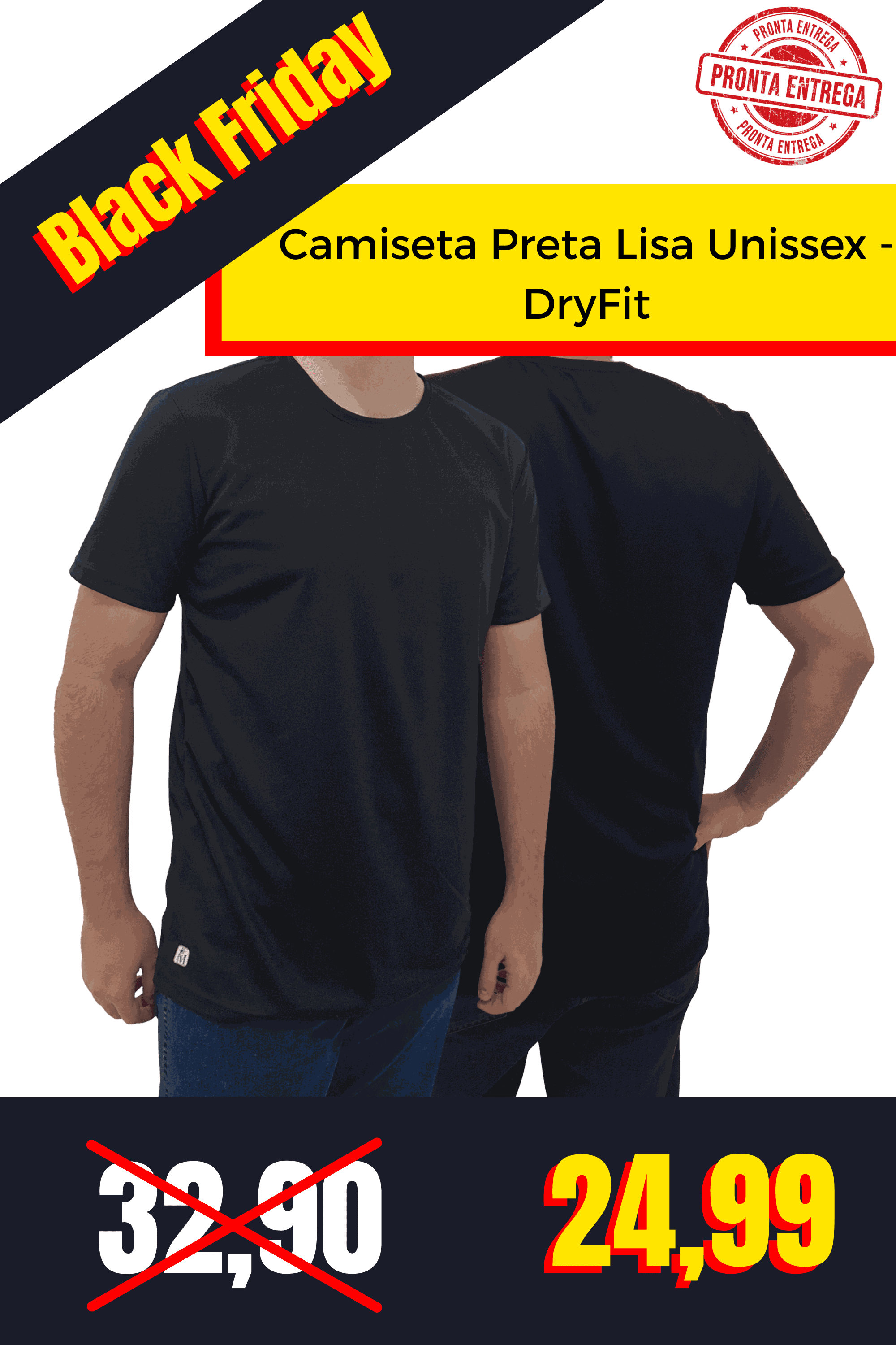 Camiseta Preto Lisa Masculina - DryFit